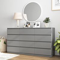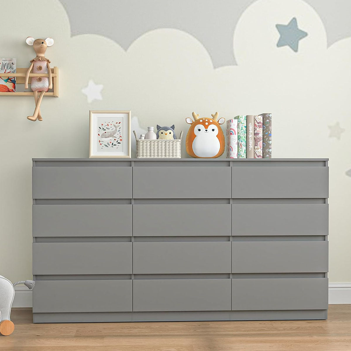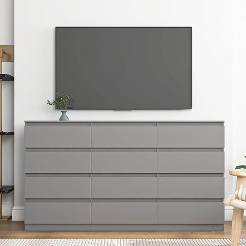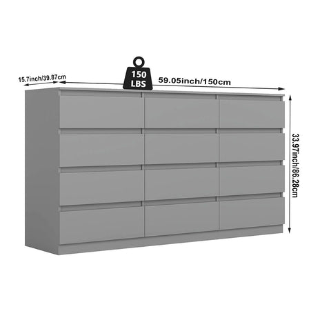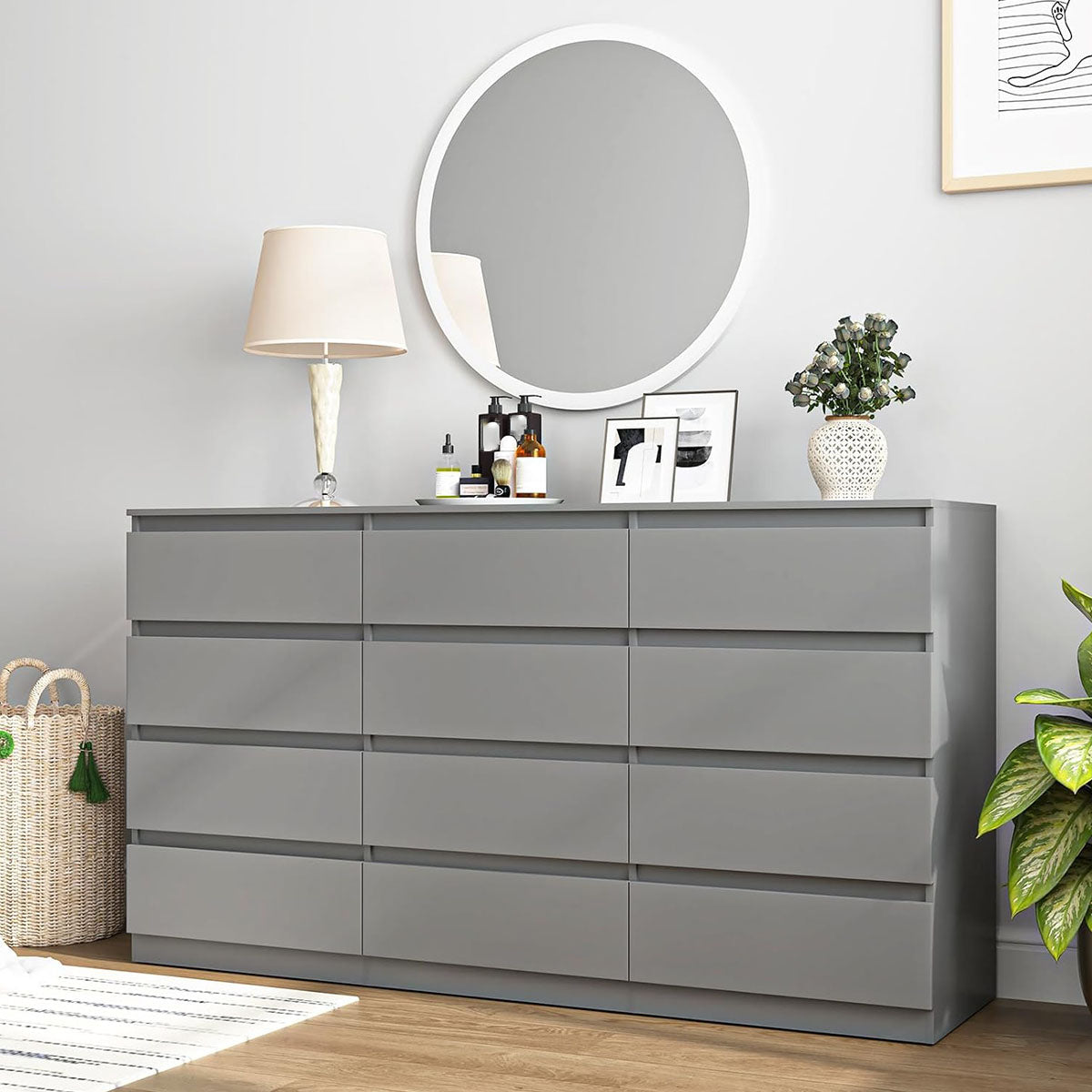 [Versatile Storage for Stylish Organization]Modern grey 12 drawer dresser can be put in any corner of the home to play a role. Store clothes or blankets in the bedroom, organize books and sundries,even used as a tv stand dresser in the living room, place documents in the home office, or use them as a makeup cabinet. This practical and beautiful bedroom dresser is a great gift for family or friends!