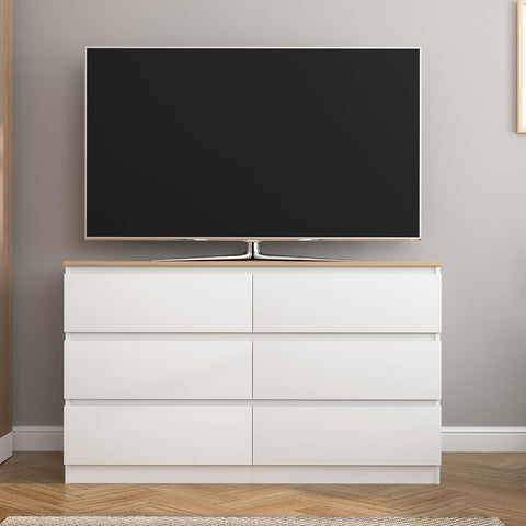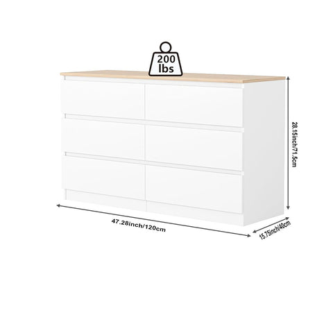 [Ample Storage Space]Per drawer. Features 6 spacious drawers, provides efficient storage space for your clothing, daily necessities, large items, and so on, get rid of clutter in your home. The wide tabletop is able to hold all your cosmetics, various decorations, or a TV.