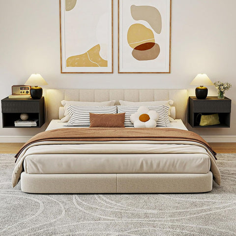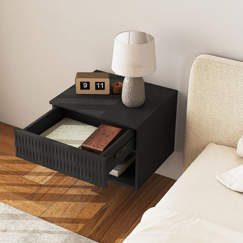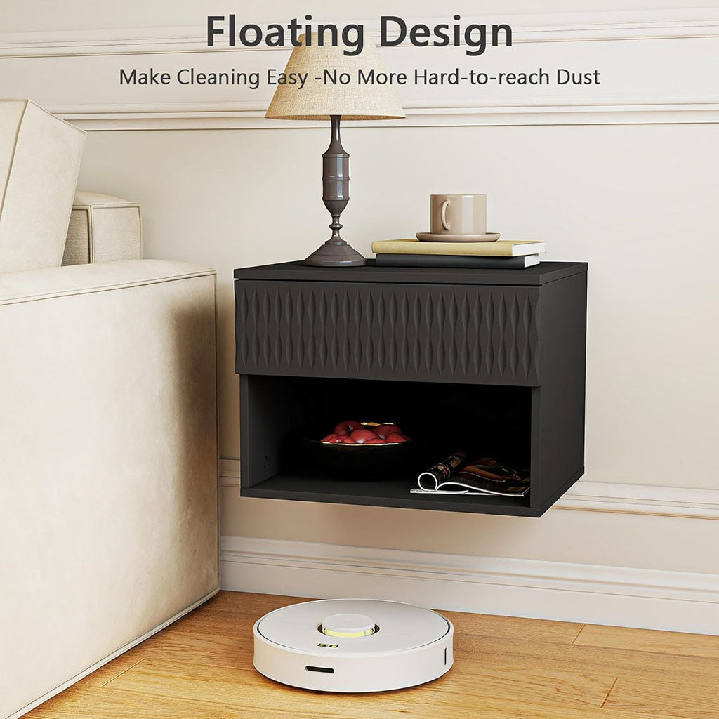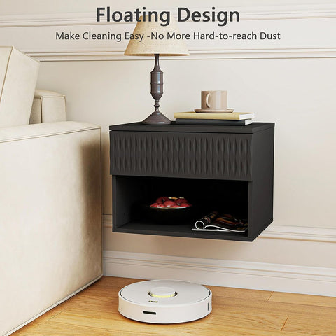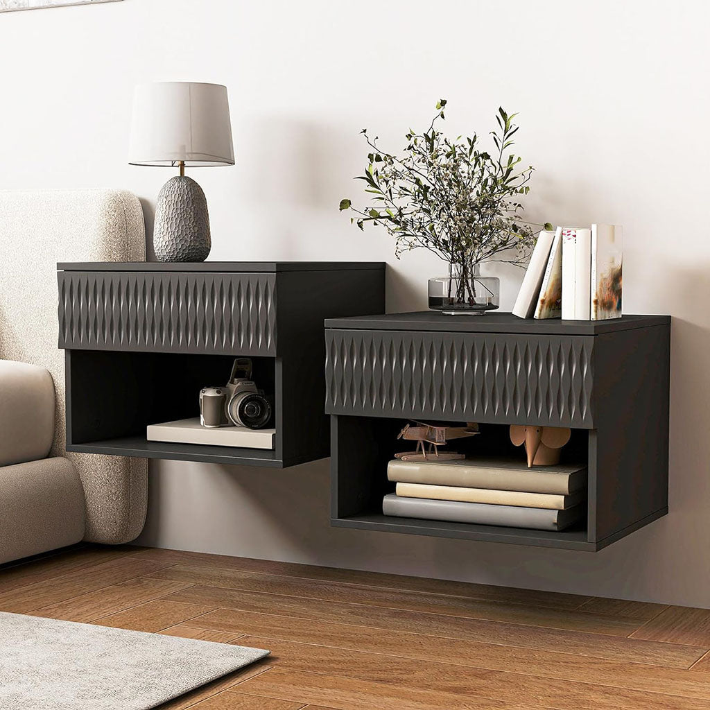 Hommoo Floating Nightstand Set of 2 with Drawer, Modern Night Stand with Open Storage Shelf Wall Mounted Bedside Table for Bedroom, Entryway Sale