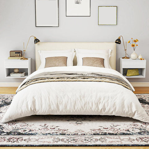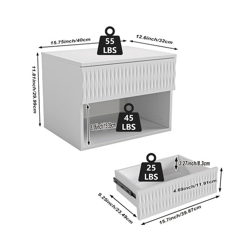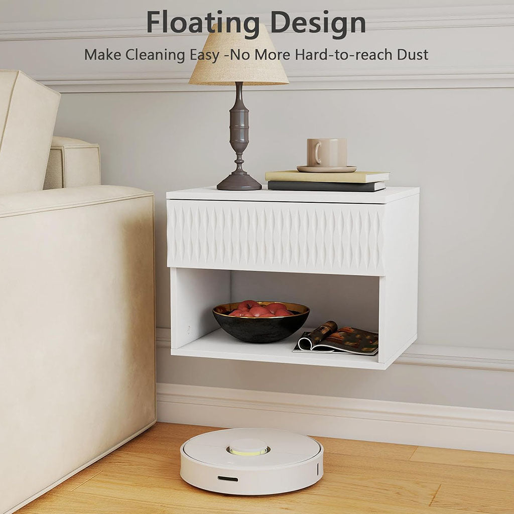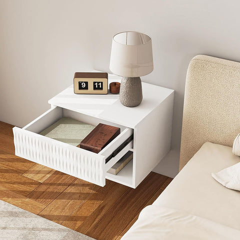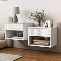 Hommoo Floating Nightstand Set of 2 with Drawer, Modern Night Stand with Open Storage Shelf Wall Mounted Bedside Table for Bedroom, Entryway - White