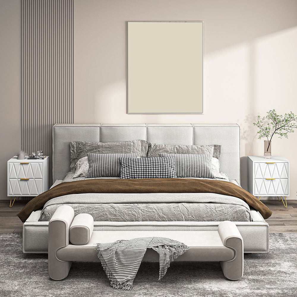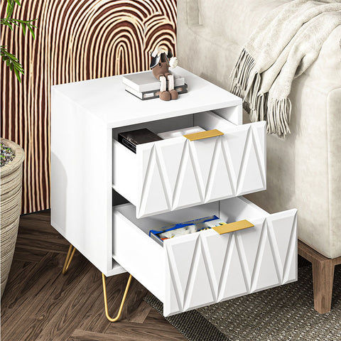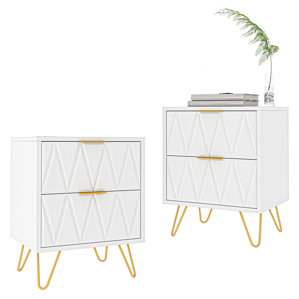 Nightstand Set of 2, Modern Bedside Table with 2 Drawers Storage, Wood End Side Table Night Stand with Metal Legs for Bedroom Living Room - White