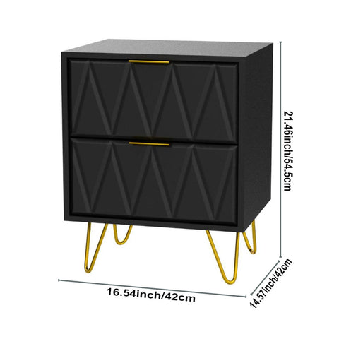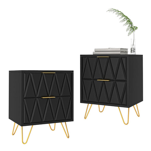 Nightstand Set of 2, Modern Bedside Table with 2 Drawers Storage, Wood End Side Table Night Stand with Metal Legs for Bedroom Living Room Sale
